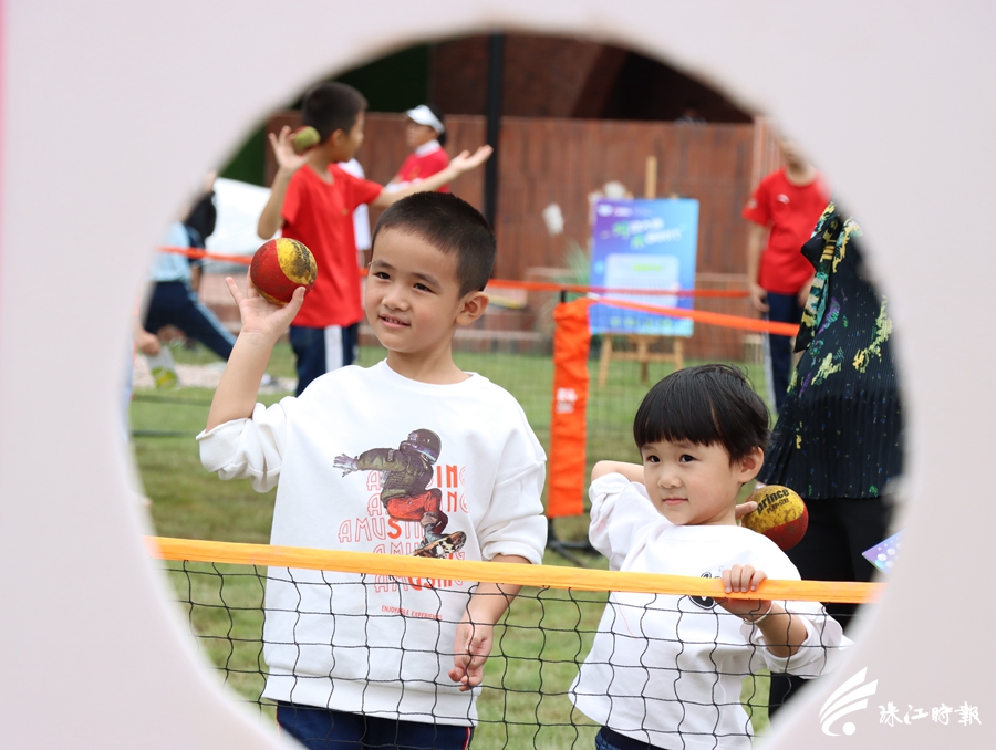 小朋友玩“躲避球”游戏。珠江时报全媒体记者刘贝娜摄