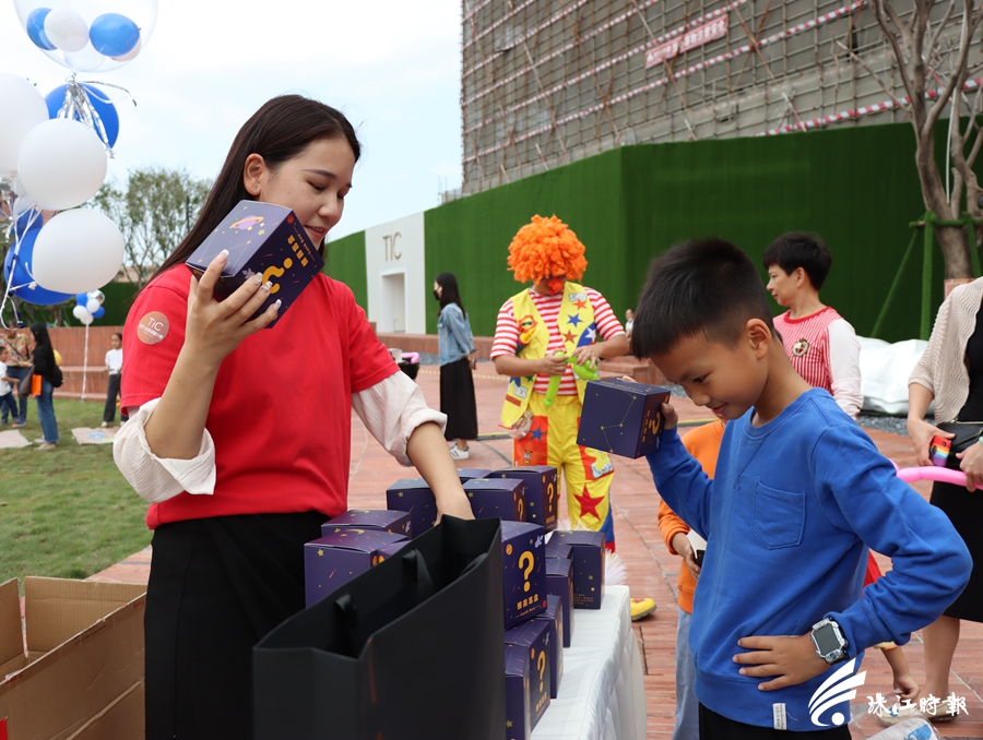 小朋友完成游戏集齐印花后,抽取一个盲盒。珠江时报全媒体记者何燕慧摄