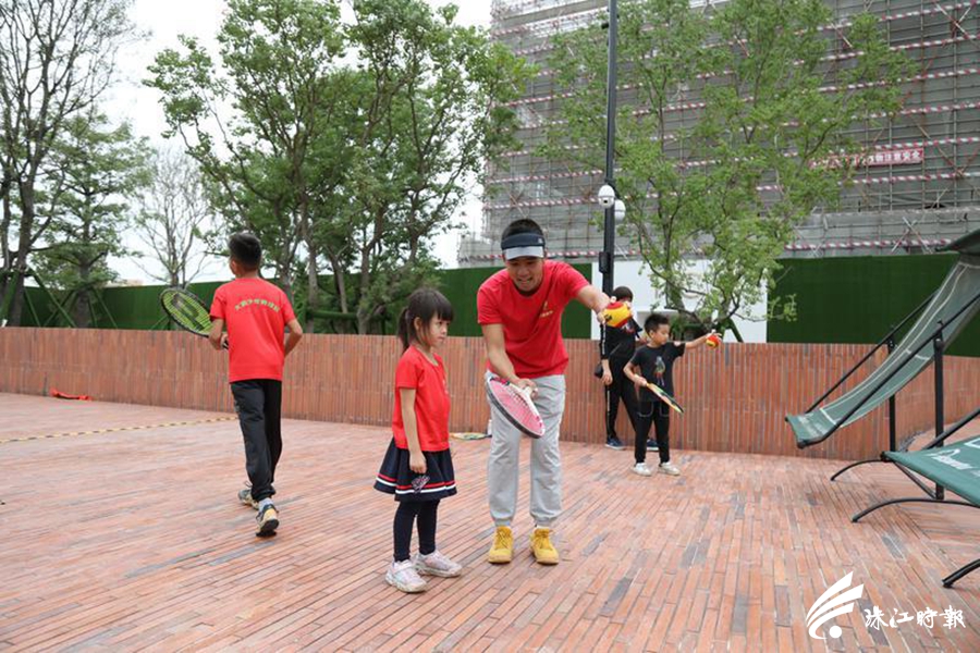 专业网球老师指导小朋友击球。珠江时报全媒体记者刘贝娜摄