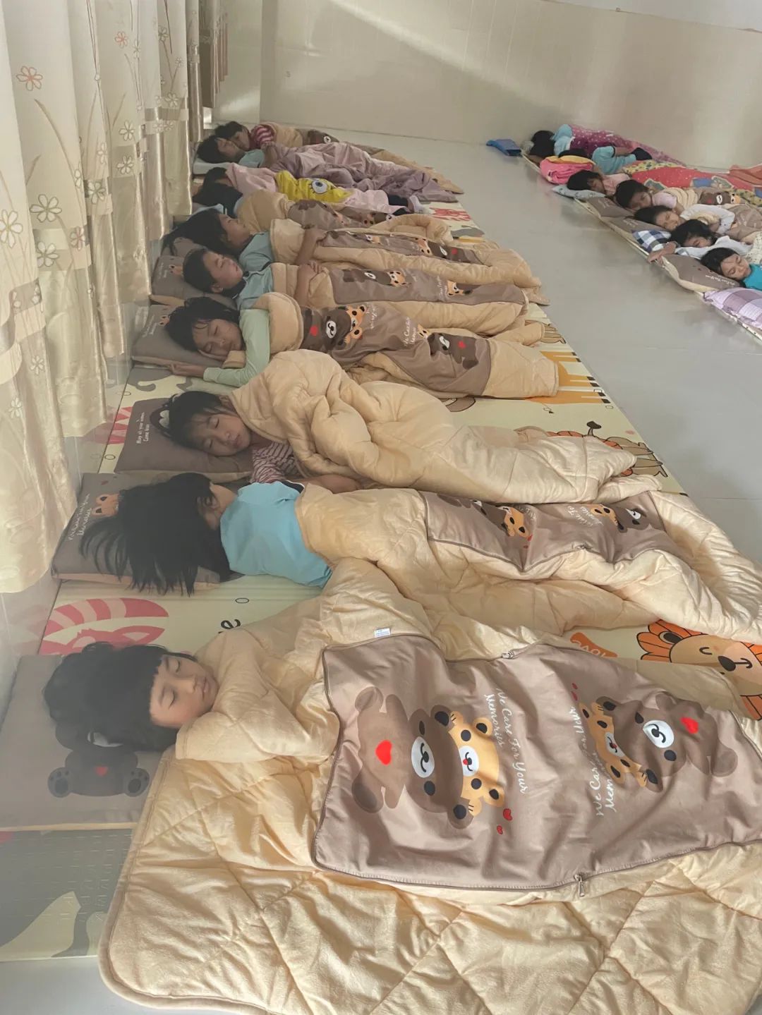 高明区杨梅小学因地制宜改造场室,为同学们提供安心舒睡的午休环境。