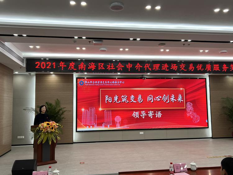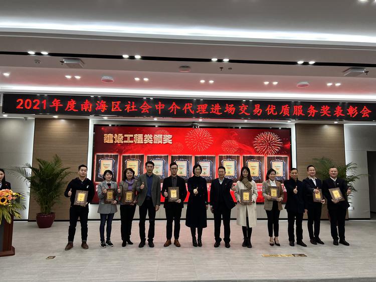 1月21日,2021年南海区社会中介代理进场交易优质服务奖表彰会在佛山市公共资源交易中心南海分中心(下简称交易中心)举行,为区内13家优秀社会中介代理机构颁发证书,选树行业标杆,营造风清气正、运作高效、公平公正的市场交易氛围,提升服务水平,优化营商环境。