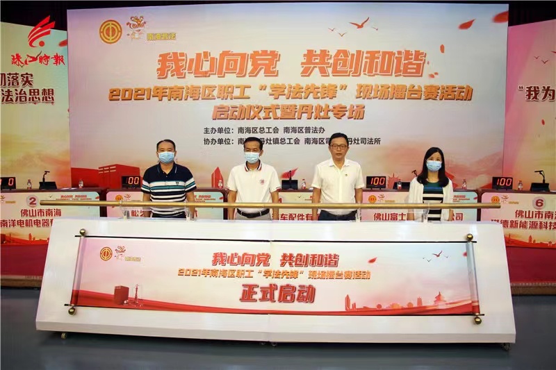 “我心向党 共创和谐”2021年南海区职工学法先锋”现场擂台赛活动启动仪式暨丹灶专场在丹灶镇政府举行。珠江时报全媒体记者吴泳摄