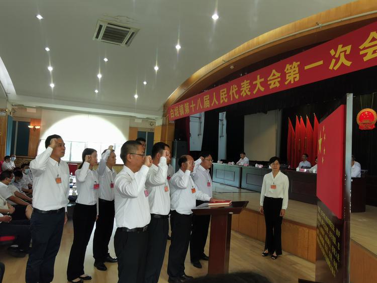 佛山日报讯 记者梁欣莹 通讯员梁宇聪、丁健迪报道:9月28日上午,白坭镇第十八届人民代表大会第一次会议正式闭幕,宣布当选的白坭镇人大主席、副主席和镇长、副镇长名单,并颁发当选证书、举行宣誓仪式。