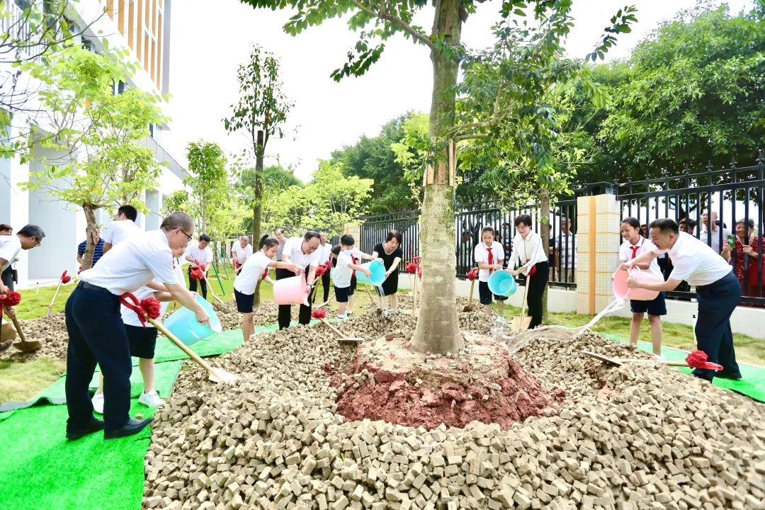 “十年树木,百年树人”。在欢快活泼的音乐声中,参加揭牌仪式的领导嘉宾在智城学校学生代表的陪同下移步校训石旁,种下树名为“万紫千红”的纪念树,寓意智城学校明日发展万紫千红。